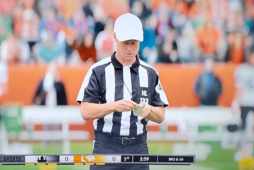 There’s a commercial for GEICO that has everything wrong about the football ref in the spot. I understand it’s a satirical setting, but football officials in the position of HL (head linesman) do not wear white hats. There is never a time when they are standing in the middle of the endzone and at no time does a football official take a rule book onto the field with them.